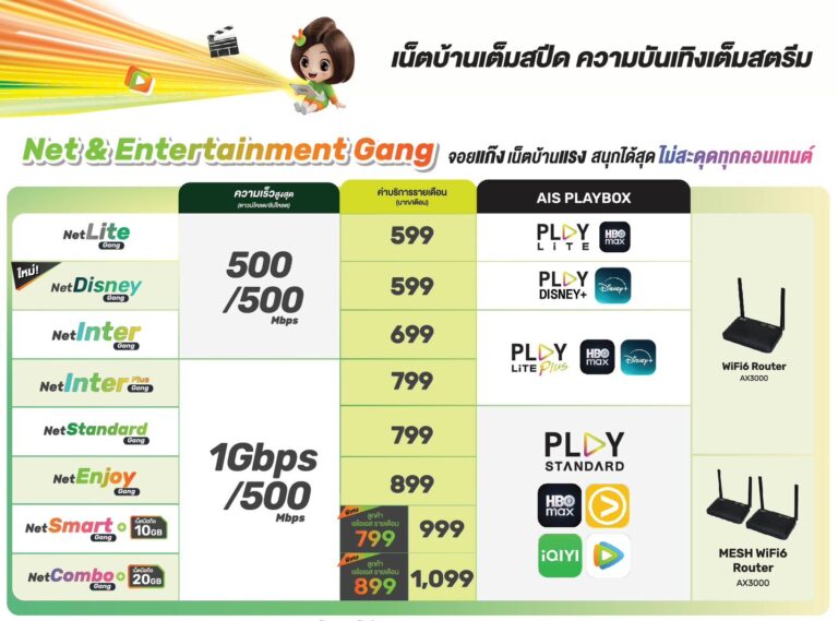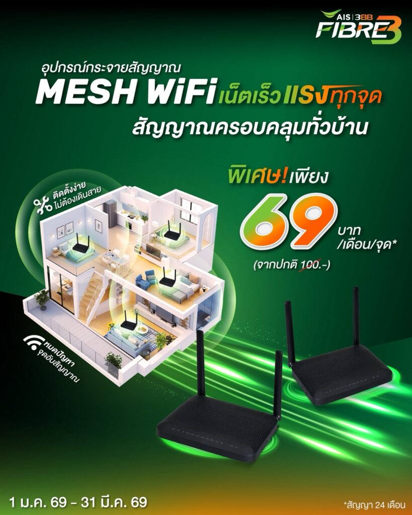 ติดเน็ตบ้าน AIS Fiber ติดเน็ตบ้าน AIS fiber โปรใหม่ เดือน มีนาคม 2569 โปรอัพเดตใหม่ ประจำเดือน ติดเน็ตบ้าน AIS Fiber เน็ตแรง สมัครผ่านออนไลน์ได้ ง่าย ปลอดภัย ติดตั้งโดยตัวแทน AIS โดยตรง ติดตั้งเน็ตบ้าน AIS Fiber วันนี้ ฟรี! ฟรี! ค่าติดตั้งและเดินสายภายนอก มูลค่า 4,800 บาทฟรี! สิทธิ์ยืม Dual Band Wi-Fi Router มูลค่า 2,500 บาท*ส่วนลดค่าแรกเข้า เพียง 800 บาท จากปกติ 2,000 บาท ติดเน็ตบ้าน AIS Fiber โปรยอดฮิต สอบถามรายละเอียด หรือ เช็คพื้นที่ให้บริการ ฟรี! ติดเน็ตบ้าน AIS Fiber Entertainment Gang ติดเน็ตบ้าน AIS ครบ จบ ทั้งเน็ตบ้าน กล่องดูทีวี หรือต้องการ เน็ตมือถือ เลือกได้ตามชอบได้เลยค่ะ สอบถามรายละเอียด หรือ เช็คพื้นที่ให้บริการ ฟรี! ติดเน็ตบ้าน AIS Fiber โปรเน็ต อย่างเดียว สอบถามรายละเอียด ฟรี! เน็ตบ้าน AIS Fiber Super Fast ติดเน็ตบ้าน AIS เน็ตบ้าน Super Fast เน็ตเร็ว 1 Gbps เพียง 799 บาท สอบถามรายละเอียด หรือ เช็คพื้นที่ให้บริการ ฟรี! บริการเสริม สำหรับลูกค้า เน็ตบ้าน AIS fiber สอบถามรายละเอียด ฟรี! สอบถามรายละเอียด ฟรี! ติดตั้งเน็ตบ้าน AIS Fiber Home Insurance ฟรี ประกันภัยบ้าน สอบถามรายละเอียด หรือ เช็คพื้นที่ให้บริการ ฟรี!